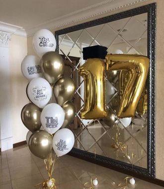 Комплект "Ты супер" 113 BYN В корзину В комплект входит: 2 цифры любого номинала 6шт шаров с надписями 7шт хром золото 3 грузика В комплект входит: 2 цифры любого номинала 6шт шаров с надписями 7шт хром золото 3 грузика