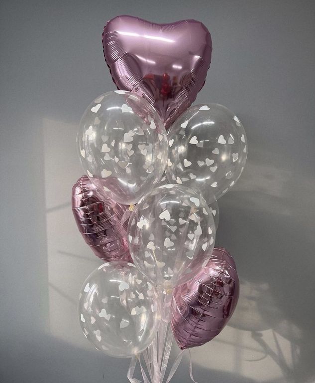Комплект " Кристальная любовь" 59 BYN В корзину В Комплект входит 3 фольгированных сердца 7 прозрачных с белыми сердечками 1 грузик В Комплект входит 3 фольгированных сердца 7 прозрачных с белыми сердечками 1 грузик