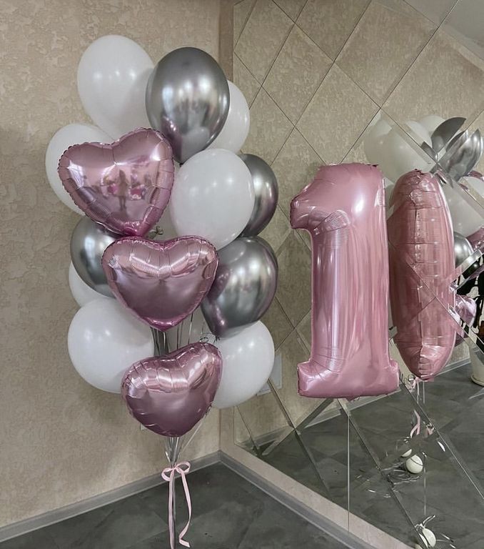Комплект " Любовь и розовый" 114 BYN В корзину В Комплект входит Цифра любого номинала 3 сердца розовых 5шт серебро хром 9шт белых 2 грузика В Комплект входит Цифра любого номинала 3 сердца розовых 5шт серебро хром 9шт белых 2 грузика
