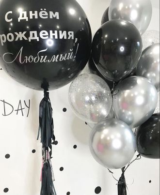 Комплект " С днем рождения Любимый" 107 BYN В корзину В Комплект входит Шар гигант с индивидуальной надписью 4шт черных 5шт серебро хром 3шт прозрачных с конфетти 2 грузика В Комплект входит Шар гигант с индивидуальной надписью 4шт черных 5шт серебро хром 3шт прозрачных с конфетти 2 грузика