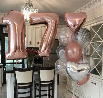 Комплект " Почти взрослая" 112 BYN В корзину В Комплект входит : 2 цифры любого номинала 2 сердца фольгированных 3шт металлик розовое золото 3шт агатов черно-белых 3шт прозрачных с конфетти 3 грузика В Комплект входит : 2 цифры любого номинала 2 сердца фольгированных 3шт металлик розовое золото 3шт агатов черно-белых 3шт прозрачных с конфетти 3 грузика