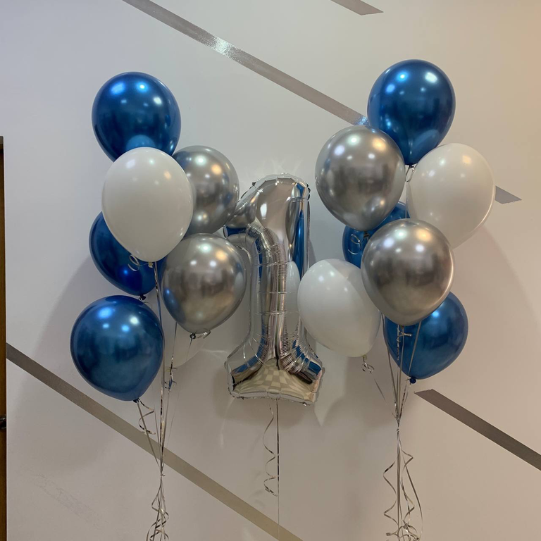 Комплект "Первое годовасие" 93 BYN В корзину В Комплект входит: Цифра любого номинала 6шт хром синий 4шт хром серебро 4шт белых 3 грузика В Комплект входит: Цифра любого номинала 6шт хром синий 4шт хром серебро 4шт белых 3 грузика